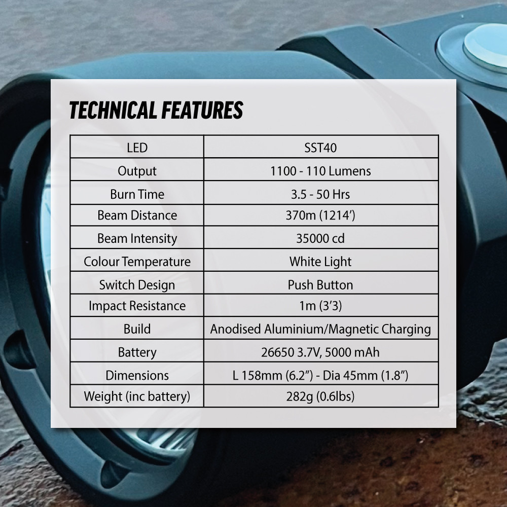 A fantastic no fuss little torch which packs a punch! Really cuts through the gloom. Bought it on the recommendation of a dive buddy so definitely owe him a beer. Great service, arrived really quickly & worked out of the box. Really easy to charge & no fuss to operate.